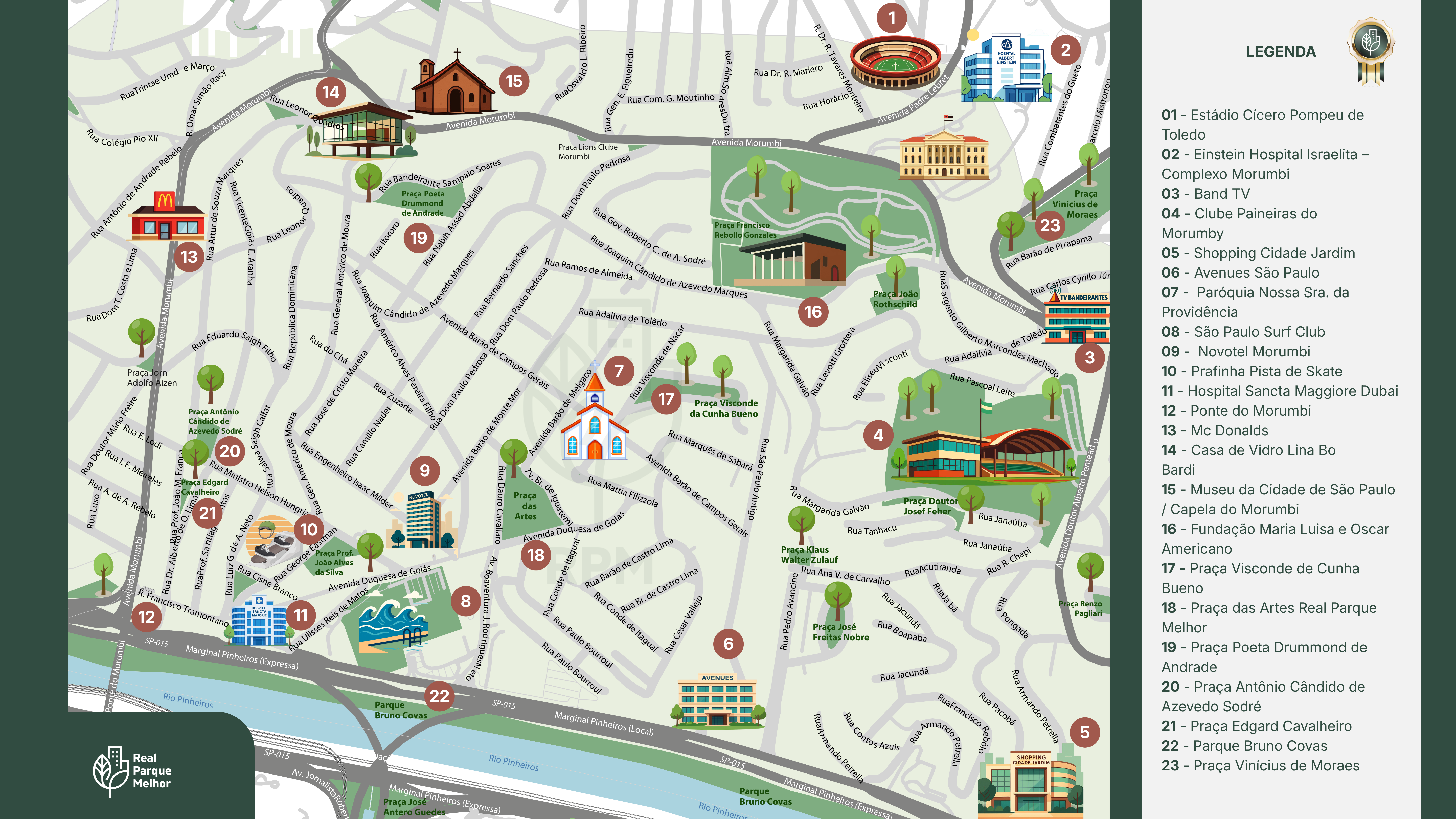 O Real Parque é um dos bairros mais tradicionais da região do Morumbi. Com mais de 75 anos de história, reúne moradores, comércio local e importantes instituições culturais. O movimento Real Parque Melhor nasceu para fortalecer